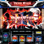 「Devil May Cry」はカプコンから登場したスタイリッシュアクションゲームで、シリーズ総販売数1600万本(2018年3月31日時点)のヒット作品。初のパチンコ化となる「CRデビルメイクライ4」は大当り確率1/199.8のライトミドルV確ループタイプで、確変割合はヘソが5%、電チューが95%(11回リミッター)。時短はヘソ通常大当り後が100回転、電チュー大当り後はリミッター到達時が100回転で通常大当り後は20回転。