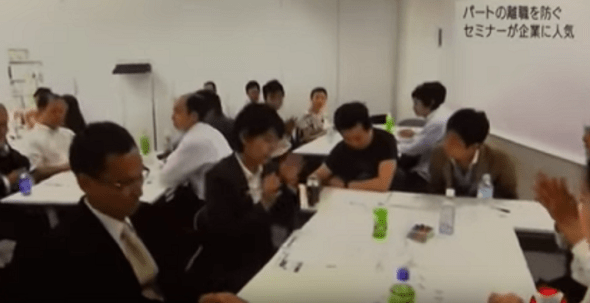 限られた人材をいかにすれば長く働いてもらえるか? 店長はリーダーシップやパート従業員の接し方を学ぶセミナーを受講する。従業員の仕事意欲を高めるコツを学ぶ。