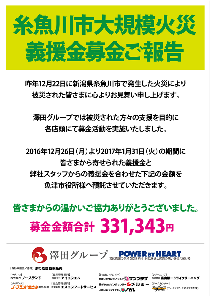 (関連記事)ノースランドが糸魚川大火への募金支援活動を開始