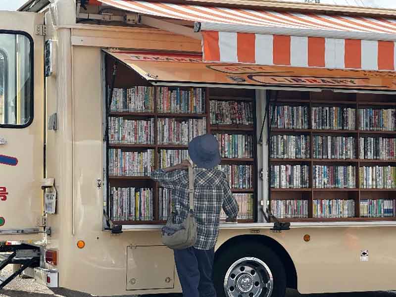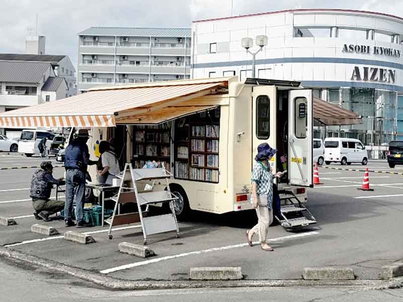 ホール駐車場が地域の本棚に。アイゼン上之町店「移動図書館ララ号」の拠点として社会貢献