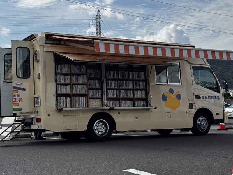 この取り組みは、高松市図書館から「月1回・1時間程度の利用スペースを提供してほしい」との相談を受けて始まったもので、警察および全日遊連の指導のもと、安全面や法的問題の確認を経て実施が決定。初回は9月29日(月)午後1時50分から1時間にわたり、同店の広い駐車場を活用して、本の貸し出しサービスが行われた。