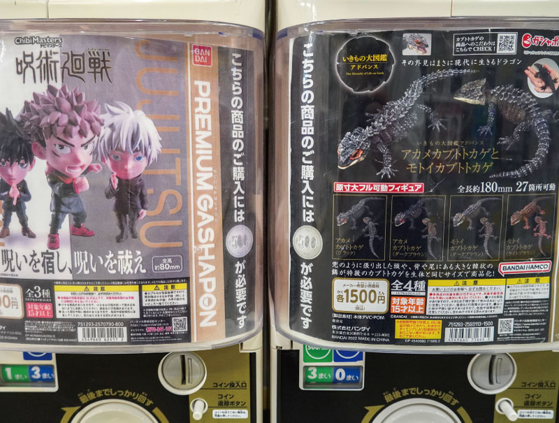 1つ1,500円という価格設定のカプセルトイ(写真右)。一昔前であれば、カプセルトイを購入するのに500円玉を用意するのは考えられなかっただろう。