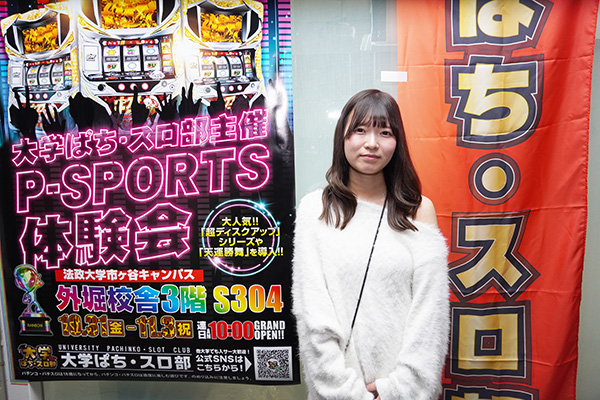 「もともと友人の紹介でパチ・スロ部に入りました。最初は30人ほどだった部員も今では100人を超えています。硬くなりすぎず、もっとラフに交流できるサークルにして、友人づてに興味を持つ人を増やしていきたいです」