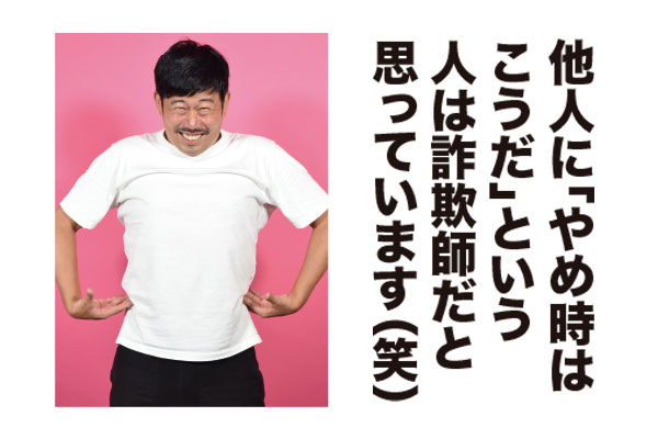 私も今でこそ芸で食えるようになりましたが、来年どうだとか分かりませんし、やめ時の恐怖とは今でも戦っていますよ。今のところ自覚はないですけど、不祥事とかあったら復帰できないでしょうし(笑)。そういうことを考えていると、何事も始める方が断然楽で、やめるという決断をする方がよっぽど大変なんだなと思います。