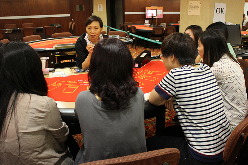 へスターさんに話を聞くと「センターの受講生ではなくマカオ大学の学生さんです」とのこと。同センターは、マカオ大学以外にも海外の大学や機関などとも提携し共同で研修を行っている。ラスベガスのネバダ大学などともワークショップを行ったことがある。なお、センターのディーラーの免許証は、米ニュージャージー州アトランティックシティのケープコミュニティカレッジとの共同設計で発効されているため、アトランティックシティのカジノで就業することも可能だが、へスターさんによれば「マカオのカジノのほうが給料が高いので実際に渡米する人はほとんどいません」と言う。