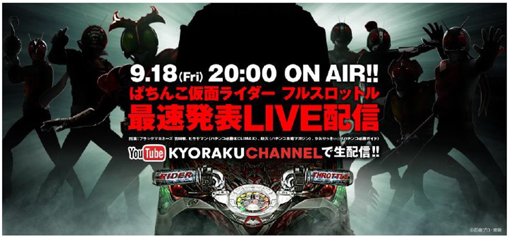 京楽「仮面ライダー」YouTubeで生配信/9月18日